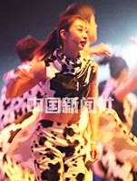 2000年中国歌曲排行榜颁奖晚会,二十三日晚在颁奖装饰一新的首都体育馆举行,并评出中国十大金曲。 图为晚会载歌载舞的热闹场面。 中新社记者 钱兴强 摄