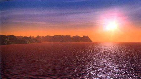 图文:科普大片《宇宙与人》全文解说词 2001年3月27日 11:03 ![]() 在地球的某个时期,海洋中充满了被氧化的铁锈,海水呈现出红色 物质的宇宙能够演化出生命,目前我们惟一所知道的就是我们自己的太阳系,但准确地说,生命很吝啬地只选择了它的第3颗行星———地球,生命在这颗星球上诞生并且改造这颗星球长达近40亿年。从生态上看,地球的美丽是独一无二的,然而今天的地球因为有了人类,就不仅是生态星球,同时还是一颗文明星球。 地球上惟一直立行走的智能生物———人类,今天已经非常轻松地生活在这颗行星上,但是,从古老文明走到现代文明,人类付出了巨大的代价。而二者之间的跨越的关键,恰恰要取决于人类认识宇宙的深度。 望远镜的原始创意 尽管有很多史前文明都显示了人类认知宇宙的兴趣,但在中国四川西部三星堆发现的3000多年前的青铜器,大概是表现得最执著的了。这是一个向往飞翔的古老集体,鸟是他们普遍的偶像,鸟的眼睛被深深地崇拜着,而他们自己的眼睛,更被夸张地塑造了。这可能是人类最早的期望通过眼睛这个器官的延长,而求索宇宙的向往,这也许是望远镜的最原始的创意。 事实是,这种愿望终于在400多年前得到了实现。人类的眼睛真的延长了,望远镜给人类文明所起的作用,可以说超过一切其它单件的工具,因为没有它,就没有可能了解天体的基本运动,也就没有对神的勇敢的否定,就没有可能在天体的观察中得到的牛顿定律,也就没有以这个定律为基础的现代工业社会。人类在400多年前通过望远镜在宇宙中获得了驾驭物质的法则,于是,我们的生活就从此日新月异。 太阳是我们拥有的一颗恒星。今天,人类对宇宙已经看得更远,理解得更深刻,这种理解使我们已经能够认识宇宙作为一个整体的物质运动,并且更加明确地认识到我们是物质运动的结果,而宇宙中的星辰,就是全部物质运动的最重要的动力。 我们把自己拥有的一颗恒星叫做太阳,它的光辉对地球的生命是最根本的,阳光在地球表面已经掠过了40多亿年,今天的生态就是纯粹阳光的塑造,这种塑造使得地球拥有了一个长达40亿年的生命链,这个链条其实就是固体的阳光,因为生命的本质的含义就是把光能变成物质的新陈代谢。 现在,我们可以精确地知道,这颗价值非凡的发光体非常的巨大,它的直径相当于110个地球,它的表面是6000度的高温,经过一亿五千万公里空间的传输,地球只得到它的光辉的5亿分之一,但这已经足够了。 它的质量相当于33万个地球,但尽管这么大,如果全部是煤,发出同样的光和热只能烧几千年。然而,它稳定地烧了50亿年,是什么东西这么经烧呢? 人类的燃烧概念是火,用一堆树枝燃烧几个小时,这就是我们的获取能量的概念。这个基本的方式一直主导着人类的文明,但这种燃烧根本没有使用宇宙中真正的能量宝库———原子核,在本质上,木头的燃烧只是原子们互换位置放出一些化学能,燃烧后,原子核的质量一点没有减少。 而太阳的燃烧和篝火原理完全不同,它在让原子核燃烧。爱因斯坦用著名的质能转换的公式计算出,核能量能达到普通化学能量的2000万倍。宇宙中最高效的核能是氢聚变成氦,也就是4个氢原子聚变成一个氦原子,这个过程可以有千分之七的物质转换成能量,虽然只有千分之七,但物质的能量太大,如果把1000克氢原子中千分之七的物质转换成能量,就相当于4000吨石油和6000吨煤。 在一节只能烧几分钟的树枝中所蕴藏的核能,足以把一盏100瓦的灯泡点亮100万年。 太阳就是一个奢侈的使用核能的天体。 宇宙的物质结构 那么,怎样才能燃烧原子核呢?这就要看我们宇宙的物质结构了。物质本身没有行为,而物质中蕴含了4种力却决定了宇宙的一切。其中最强的是强力,它存在于强子之中,核能就是靠它产生的,但这种力只在原子核的直径范围起作用,所以,产生核能就必须让它们相互接触,也就是核聚变。 核聚变必须有中子,而另一种弱力,能使质子衰变成中子,并释放出射线,这个力是核聚变不可缺少的。 而能否使核聚变发生,关键却在于电磁力,它比强力弱100多倍,不过它延伸得比强力远,所以一般情况下强力被电磁力封闭着,如果突破不了电磁力,就不会有核聚变。其实电磁力是一种非常温和而美好的力,它天生就有正和负,永远不会过分,所谓阴阳生万物,因此它就构成了宇宙中最丰富的物质演化,包括生命。 引力是最弱的力,在单个原子中比电磁力弱几万万亿倍,但宇宙对它几乎没有限制,因此它将会以多胜少,最终统治宇宙。 构成我们生命的主要是电磁力,强力和弱力被封闭着,而引力在我们身体中可以被忽略,但我们的身体却能感觉到地球的引力,因为引力会随着物质的增大而显示出来。我们举起重物时,就是肌肉中的电磁力在和地球的引力做抗衡,人们很多的锻练方法,就是用地球的引力来增长我们肌肉中的电磁力的能量。 是引力最终打败电磁力,是当一个物体变得像太阳这么大的时候,这不仅能控制地球围绕它旋转,同时它的每个原子的引力都向中心塌缩并输送压力和热量。而由于太阳的质量巨大,因此它的引力就可以积累到极高的温度,温度越高,原子核运动速度越快,当达到1000万度时,原子核的电磁力将无法阻挡高速奔跑的原子核相互碰撞的力量。于是原子核的强力终于在瞬间的结合并让物质释放出巨大能量,这就是核聚变,是太阳以及宇宙中