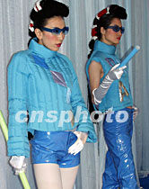由上海南极人公司主办的“南极人都市羽绒秀”,二十九日晚在北京国贸冰场举行,模特身穿由中国著名服装设计师王新元、吴简婴和姚峰设计的作品一展羽绒 时 尚服饰风采。中新社记者 钱兴强 摄