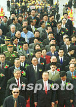 全国人大副委员长王光英、全国政协副主席万国泉以及有关部委,各省市区代表,港澳台及海内外侨胞千余人,五日在陕西黄帝陵参加清明公祭轩辕黄帝仪式。中新社记者 宋吉河 摄