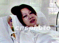 中国失踪飞行员王伟的妻子四月六日在病床上等待着丈夫的归来。中新社图