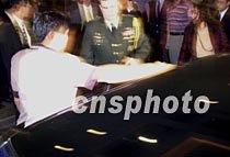 美国驻华使馆官员席乐高等人七日晚十时许在海口文华大酒店乘坐中方安排的车辆,第三次与美国军用侦察机机组人员见面。中新社记者 贾国荣 摄