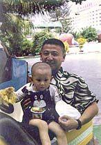 中国飞行员王伟与儿子(资料图片)。中新社图