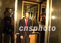 美国驻华使馆首批官员八日凌晨一时许,与美国军用侦察机机组人员第三次见面后返回海口文华酒店。中新社记者 贾国荣 摄