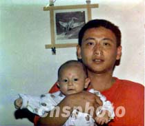 舔犊情深,中国飞行员王伟几年前在家中与其子合影。(资料)中新社图
