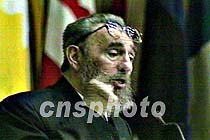 日前, 在古巴哈瓦那召开的各国议会联盟第一百零五届大会上,古巴国务委员会主席卡斯特罗指出,美国政府在撞机事件后的表态是“典型的冷战语言”。他说,中国政府绝不会惧怕美国的霸权主义行径。中新社图