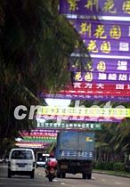 海南省会海口市如今是美国驻华使馆官员一行和美国军用侦察机机组人员所在之地,市区主要街道椰林绿叶与鲜艳的横幅广告十分夺目。中新社记者 贾国荣 摄