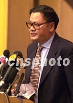 海南省政府外事侨务办公室主任陈辞,九日晚八时许在海口文华酒店举行的新闻发布会上指出,欢迎美国游客来海南观光度假,但不欢迎美国间谍飞机。中新社记者 贾国荣 摄