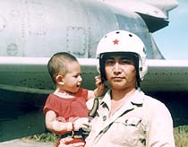 中国飞行员王伟与爱子在自己的飞机前留影。(资料图片)作者:龙运河