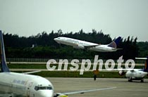 美国军用侦察机的机组人员十二日清晨搭乘美国专机,从中国海南省海口市美兰机场起飞离境。中新社记者 贾国荣 摄