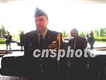 美国驻华使馆武官席乐高准将十二日凌晨秘密离开海口文华大酒店,送别美方机组人员后又回到酒店。中新社记者 莫成雄 摄