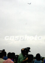 中外记者十二日凌晨七时许在中国海南省海口市美兰机场边,远远地目击搭载美国军用侦察机机组人员的美专机起飞离境。中新社记者 贾国荣 摄