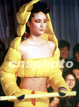 中国名模陈娟红,日前在北京举办的第九届中国国际服装服饰博览会上,展示“南极人”羽绒服饰作品。中新社记者 钱兴强 摄