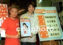 香港商业电台903频道总监黄仲凯先生17日赠送以张学友为主角的卡通版幸福男人漫画予他,并预祝他在首场拉阔音乐会演出成功。中新社传真 邓庆乐 摄