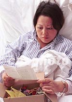 四月十八日上午,正在北京某医院住院的英雄飞行员王伟的妻子阮国琴,收到了北京市海淀区成府小学一(1)班42名小学生写来的一封慰问信和折叠的403只小纸鹤。这些小学生十分怀念王伟叔叔,祝愿阮国琴阿姨早日恢复健康。中新社图 张全跃 摄
