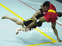 “九运会”武术散打预赛西藏包必存击败福建丁奋勇
