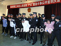 北京第二中级人民法院二十日召开“严打”整治斗争公判大会,一批严重刑事罪犯今日伏法。中新社图 李刚 摄