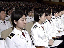 中国海军女兵与解放军四总部官兵代表两千余人,二十四日在北京参加中央军委授予王伟烈士“海空卫士”荣誉称号命名大会。