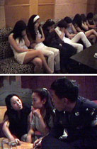 北京警方二十七日晚突击检查王府井步行街中一家从事色情服务的场所,对从事色情不法活动的“三陪小姐”,一一登记收容处理。