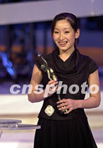 大陆新秀影星秦海璐29日在香港举行的“第二十届香港电影金像奖颁奖典礼”上,荣获本届金像奖最佳新演员奖。中新社传真 洪少葵 摄