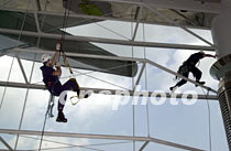 图文:香港警方确保“财富论坛”顺利进行 2001年5月6日 09:31 ![]() 香港全面检查《财富》全球论坛会场。香港官方搜爆队的“蜘蛛人“,5月5日对“2001年《财富》全球论坛”会场进行立体搜索。中新社传真 任晨鸣 摄
