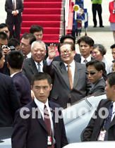 香港特区行政长官董建华等五月八日到机场迎接国家主席江泽民。中新社传真 任海霞摄