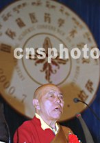 国际藏医药学术会议七月十五日在拉萨市隆重召开,大会主席、西藏藏医学院院长措如-次朗主持会议。中新社记者 宋吉河 摄