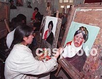 位于拉萨市郊的西藏大学艺术系藏族学生,以本民族模特为对象进行油画创作。中新社记者 邹宪 摄