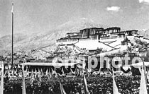 一九五六年四月二十二日,西藏自治区成立,民主改革开始。图为拉萨布达拉宫前举行的西藏自治区成立大会。(辉煌五十年大事回顾12)