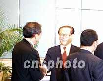 应邀出席《财富》全球论坛香港年会的中国国家主席江泽民,8日下午在香港会展中心会见了与会的世界知名企业家和香港工商界代表。江泽民与代表一一亲切握手、寒暄。中新社图 张朔 摄