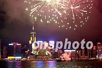 为祝贺2001年《财富》论坛在香港举行,8日晚维港举行烟花汇演。奼紫嫣红的烟花将维港装扮得分外美丽。中新社图 洪少葵 摄
