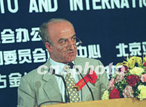 黎巴嫩驻华大使齐丹·萨基尔九日在第四届中国北京高新技术产业国际周“入世”与国际合作论坛上作《我们需要中国农业合作项目》的演讲。中新社图 史利 摄