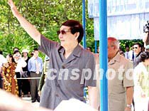 朱镕基总理日前在马累出席中国援助马尔代夫住房项目奠基仪式时,向欢迎人群招手致意。中新社记者 谭宏伟 摄