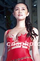 著名内衣品牌欧迪芬,日前在北京推出2001夏内衣新款,其中富有特色的 “中国红”内衣系列受到宾客赞许。图为模特展示“中国红”内衣新款。中新社记者 钱兴强 摄