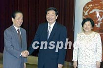 中国国务院总理朱镕基与夫人劳安结束对巴基斯坦、尼泊尔、马尔代夫、斯里兰卡、泰国等五国的访问后,二十二日乘专机回到北京,国务院副总理钱其琛等在北京人民大会堂迎接。中新社记者 毛建军 摄