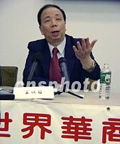 图文:世界华商大会诚邀美国华商赴南京共襄盛举 2001年05月23日 07:02 ![]() 美东时间21日下午,中华全国工商业联合会副主席王以铭在纽约举行的新闻发布会上说:第六届世界华商大会将于九月十七日至十九日在中国江苏南京召开。预计有约五千名海外华商、中国知名企业家和经济界人士与会。中新社记者 陈建 摄