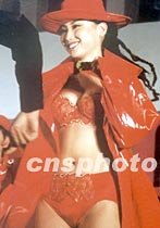 日前,在北京举办的内衣品牌“欧迪芬”2001夏季新款展示会上,中国名模张君小姐身穿红色外套、红色内衣边展边舞。中新社记者 钱兴强 摄