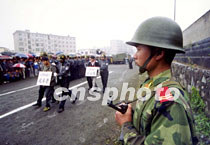 中国安徽省繁昌县三十日上午在该县体育场召开“公捕公判”大会。公开逮捕了十名犯罪嫌疑人并对十一名犯罪分子进行了宣判。中新社图 吴芳 摄