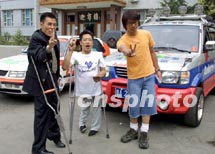 中新网西安6月4日消息:6月4日上午,“北京——莫斯科申奥万里行”车队准备从山西省运城市出发前往西安时,喜逢一个不寻常的志同道合者。 这支车队虽只有二部车,但却因二位主人都是残疾人而格外引人瞩目。他们分别是身为广州九家公司总裁的孙杰和新疆青年孙永赓。 今年5月10日,孙杰一行二人从广州出发,打着“中华儿女亿万签名援申奥,残疾青年驾车万里迎奥运”的旗帜,已驾车行进一万三千多公里。 山西省是孙杰的老家。他们今早一抵达运城,听说“万里行”车队正好也在同一城市,就立即赶来相会。“万里行”文艺大使、著名歌手红豆与他们热情相拥,凤凰卫视随即采访了这支“特殊”的申奥车队。(文/吕振亚 图/魏孝明) |