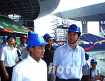 中国体育总局局长袁伟民、副局长李富荣等一行,五日在广州视察“九运会”各场馆的建设情况。中新社记者 罗仰明 摄