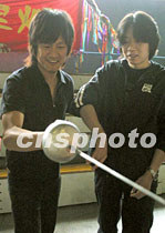 明星老狼、高明俊随凤凰卫视“申奥万里行”来到辽宁体育运动学校体操馆,参加在这里举办的各种活动。中新社图 魏孝明 摄