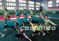 图:曾静漪与甘肃少年武术队员为北京申奥助威