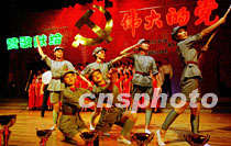 福州市鼓楼社区日前举办歌咏比赛,来自二十多家单位的一千五百多名群众演员亦歌亦舞轮番上场。民众扮演红军,缅怀难忘历程。中新社记者 郑祚声 摄
