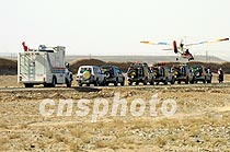 图:“万里行”申奥凤凰车队抵达嘉峪关 2001年6月12日 10:44 ![]() 六月十一日下午四时许,“万里行”申奥凤凰车队抵达嘉峪关,图为车队行进在戈壁滩上,飞机正在航拍车队在穿跃“天下第一雄关”时的情景。中新社图 魏孝明 摄