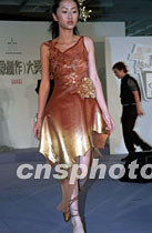 模特出身的新晋歌手王秀琳12日在香港为「好男好女-第六届杰出青年设计(形象创作)大奖」展示本地时装设计新秀的作品《阳光》,结果与另一参赛作品《变种》并列大奖。中新社图 邓庆乐 摄