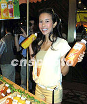 影视歌三栖艺员莫文蔚六月十三日在上海与顶新国际集团签约,作为其新鲜纯果汁“每日C”的形象代言人。据悉该果汁以新鲜为生命,这也正是莫文蔚所欣赏的。中新社记者 潘索菲 摄
