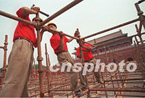 图文:迎“三高”演唱会 紫禁城开始“整容” 2001年06月15日 07:34 ![]() 建筑工人连日在北京紫禁城午门前广场搭台,为六月二十三日世界三大歌王的演唱会抓紧施工。中新社记者 史利 摄