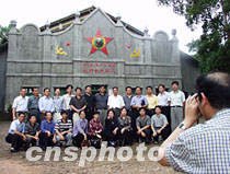几个月来,江西瑞金老区十分火热的"红色旅游",使这个小县城天天宾馆满员,临近“七一”中国共产党八十诞辰日,这里游客更盛。图为瑞金市中华苏维埃共和国临时中央政府旧址前一个旅游团集体照相留影。中新社记者 王丽南 摄
