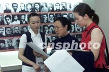 中共建党80周年图片展即将于二十日在北京开幕,负责图片展解说的年轻女孩在专家的指导下认真准备解说词。中新社记者 满会乔 摄