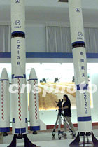 图:建党80周年图片展中的航天模型 2001年06月21日 11:22 ![]() 中共建党80周年图片展二十日在北京开幕,表现中国航天发展成就的火箭模型在展示农业成就的滚滚麦浪图片映衬下颇为醒目。中新社记者 满会乔 摄